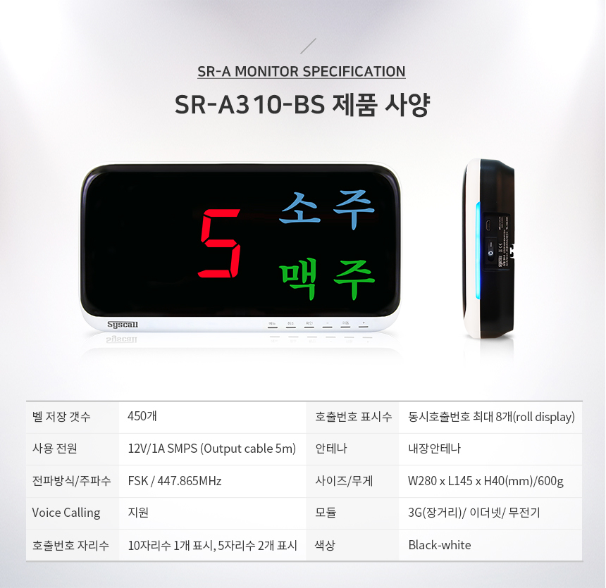 > 신형 소주맥주 모니터 SR-A310-BS