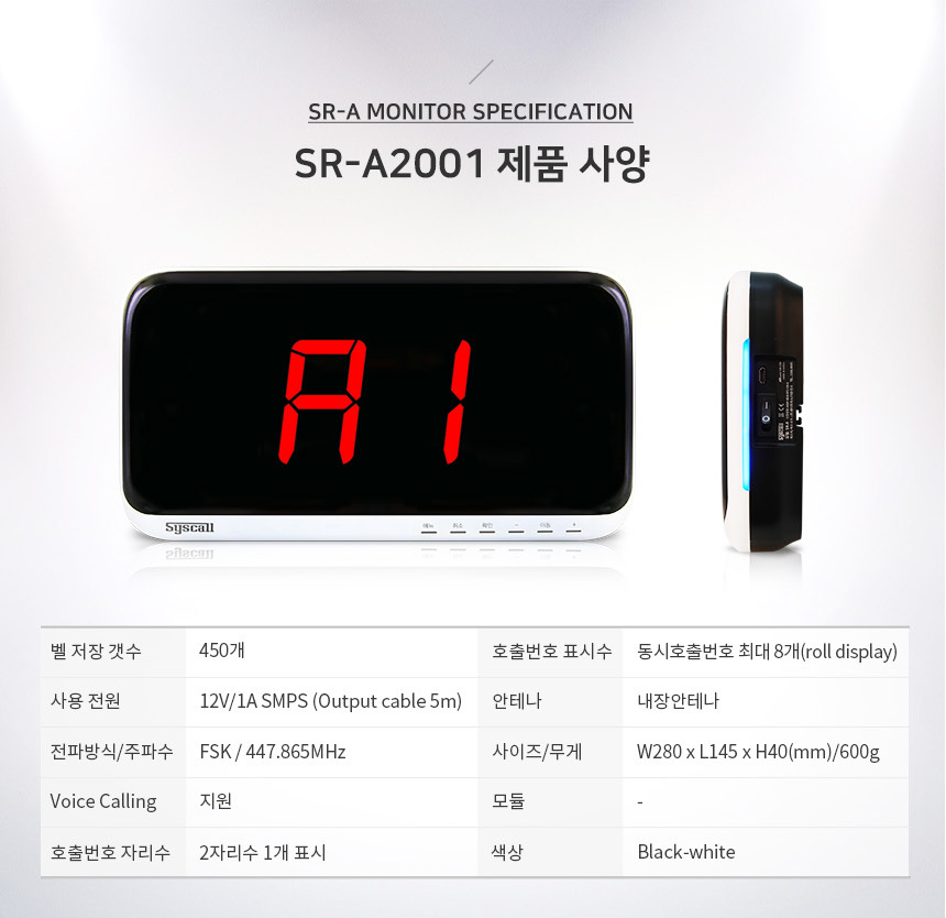 > 식당용 호출벨 신형 수신기 SR-A2001
